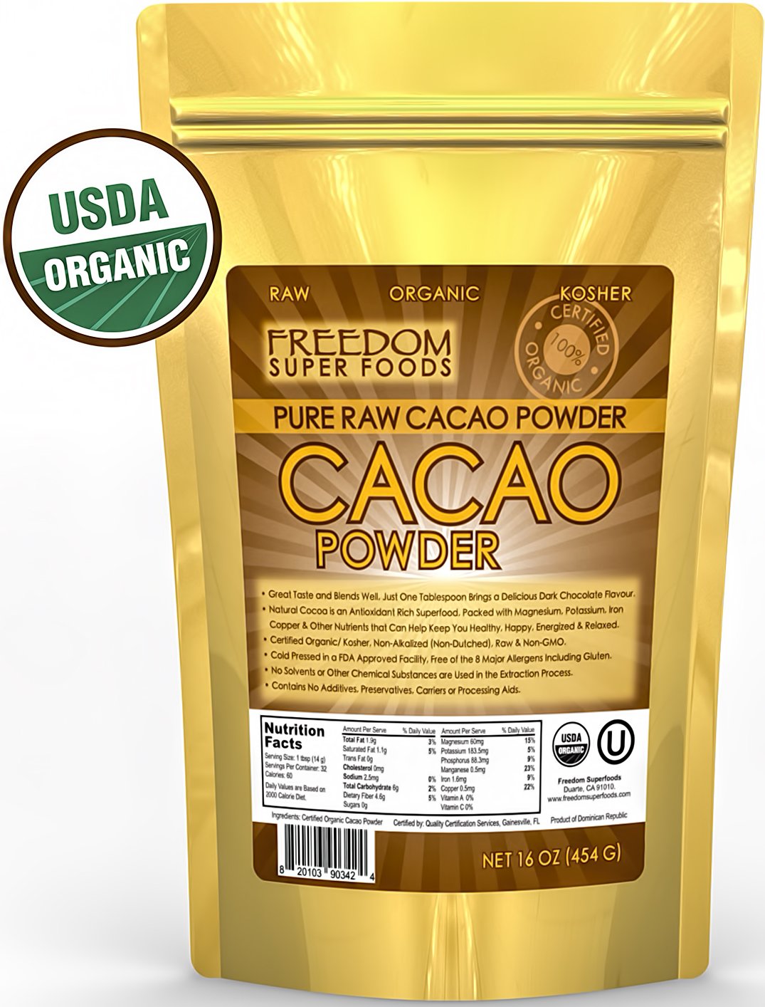 • You know this has been created with quality in mind because we only source from small sustainably run family owned farms in the most secluded, untouched, ancient rainforest in remote parts of the Dominican Republic. The result is the purest of raw organic cacao powder. Which is then processed in our FDA approved facility free of the 8 major allergens including GLUTEN.